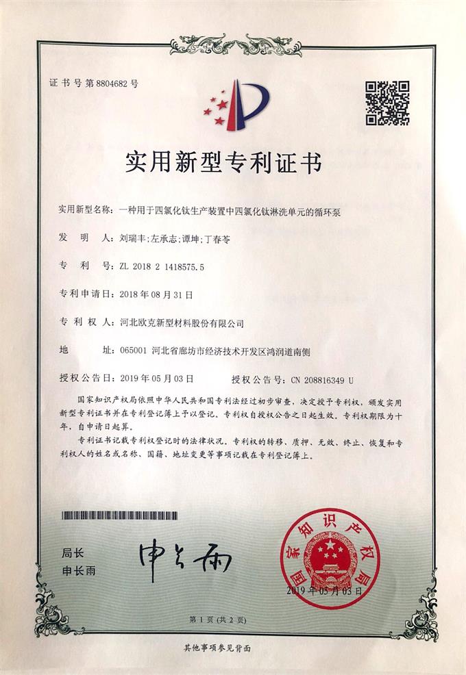 一種用于四氯化鈦生產(chǎn)裝置中四氯化鈦淋洗單元的循環(huán)泵專利