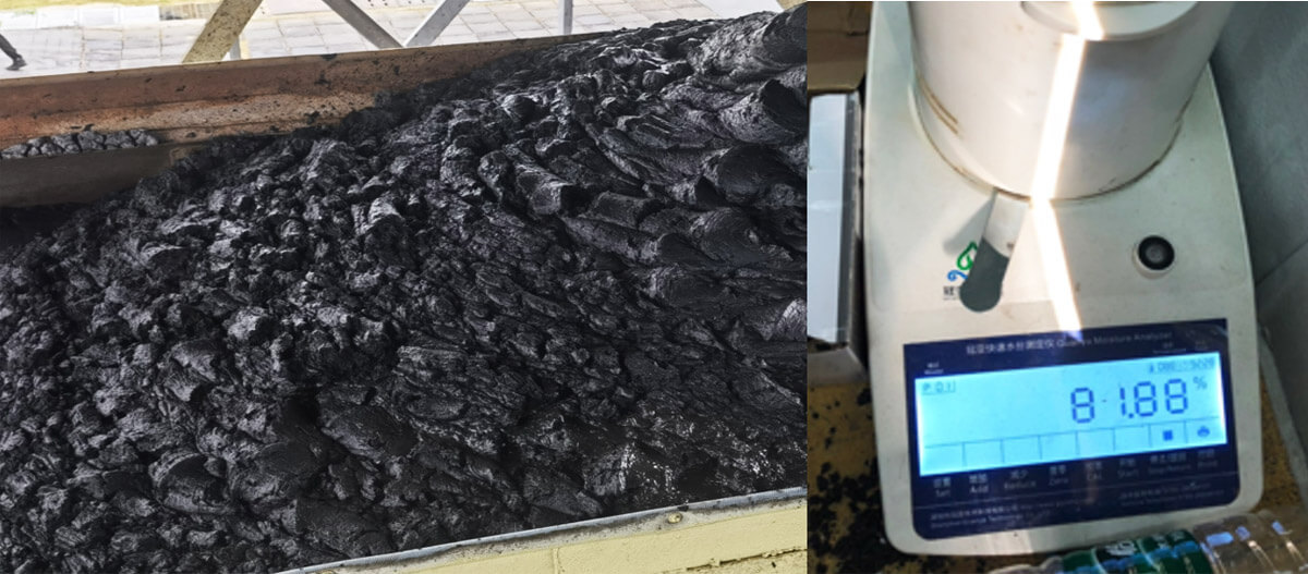 通過(guò)離心機(jī)脫水后,含水率 80%濕泥